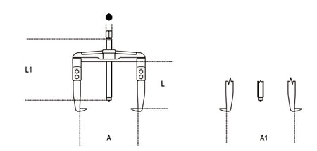 1500/SP5 - Set of 5 Two-Leg Universal Pullers (Item 1500/...), with Stand