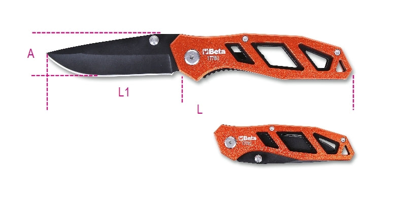 1778U - Foldaway Knife, Hardened Steel Blade "? in Case