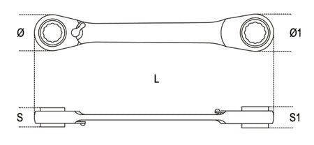 195P - Reversible Ratcheting Double-Ended Offset Bi-Hex Ring Wrenches, Bent at 15?