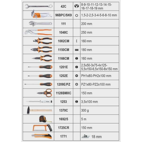 2056T/E - Tool trolley with assortment of 163 general maintenance tools