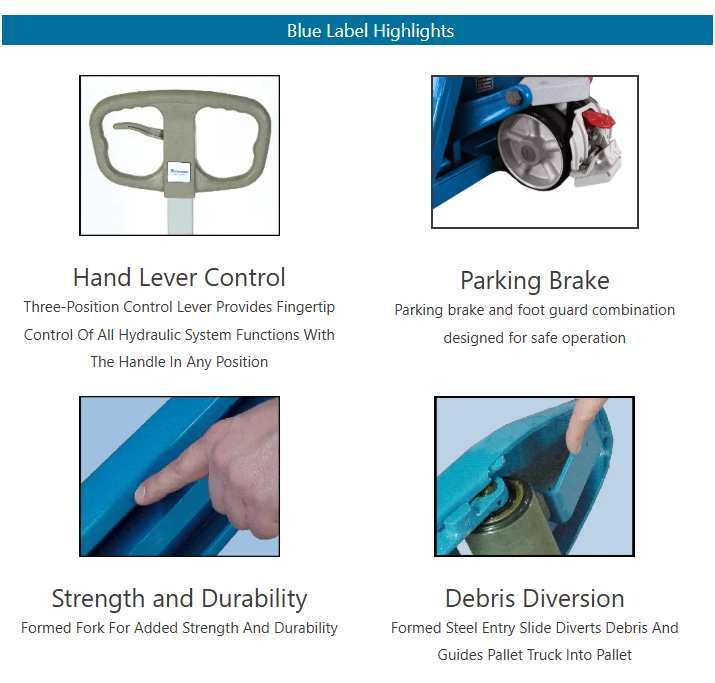 Bishamon BS Series Blue Label Hand Pallet Trucks are built for strength, smooth operation, and long-lasting performance. These heavy-duty manual pallet jacks deliver exceptional rollability and include advanced features rarely found in other models—making them ideal for demanding material handling tasks.